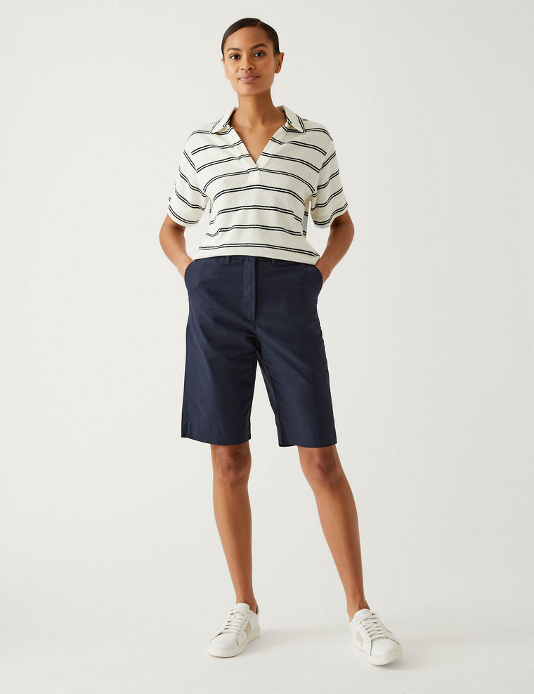 These cotton-rich chino shorts are made for balmy days. They're designed with knee-length legs and feature split hem detailing for easy movement. A zip and button fastens the high waist, which includes belt loops for a secure fit. We only ever use responsibly sourced cotton for our clothes. M&S Collection: easy-to-wear wardrobe staples that combine classic and contemporary styles.