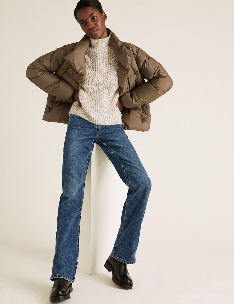 Feel effortlessly chic in our cotton-rich Eva jeans. Slim bootcut shape with a flattering high waist and ankle grazer length. Super stretchy fabric and soft denim ensures our best ever fit and feel. Made with recycled polyester. All M&S denim is made with sustainably sourced cotton and less water.