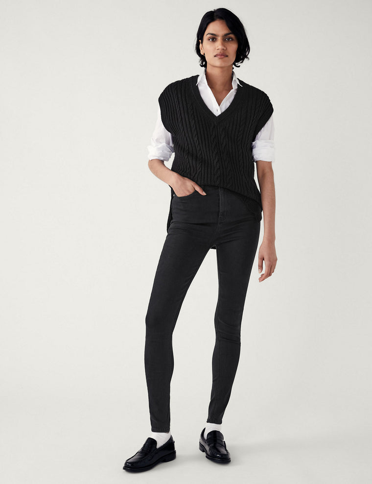 Supersoft cotton-rich fabric makes these high-waisted jeans a wardrobe essential. They're cut in a skinny fit with added stretch for a comfortable, figure-hugging shape. M&S Collection: easy-to-wear wardrobe staples that combine classic and contemporary styles.