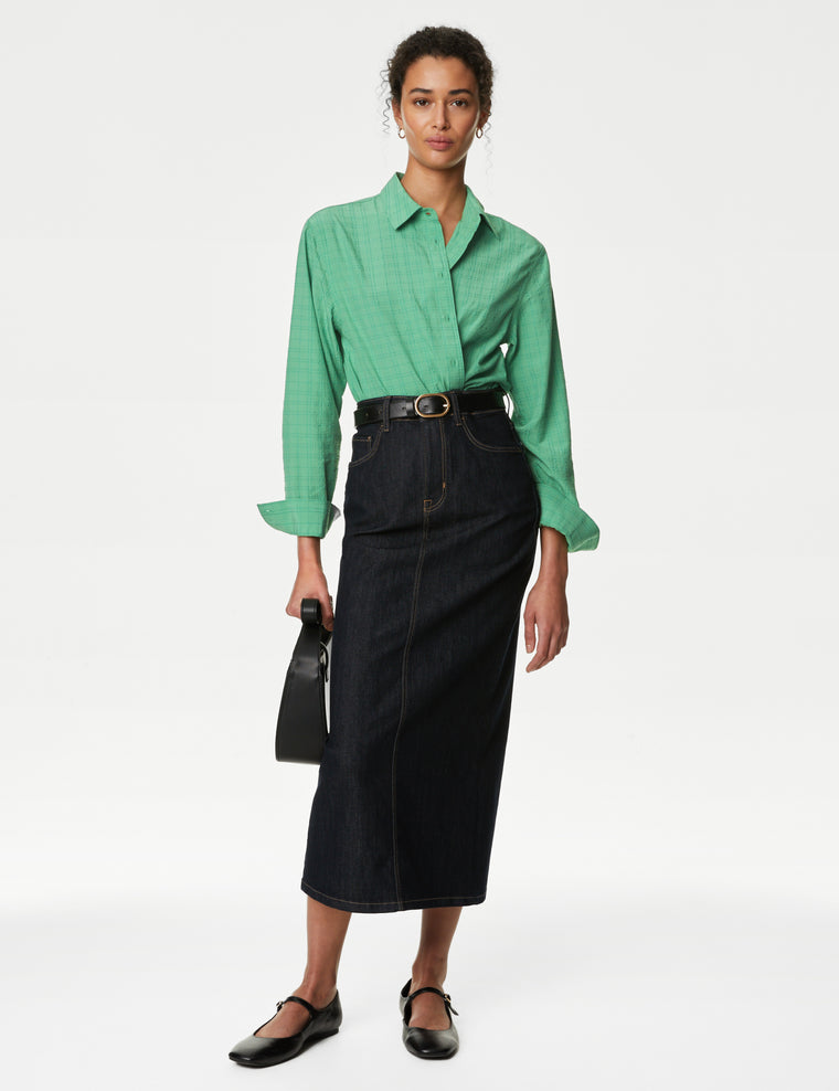 This shirt is crafted from modal-rich fabric for a breathable and lightweight feel. It's cut in a comfortable regular fit, with a collared neck and button-through fastening. The long sleeves are finished with neat buttoned cuffs. The textured check design creates a smart look. M&S Collection: easy-to-wear wardrobe staples that combine classic and contemporary styles.