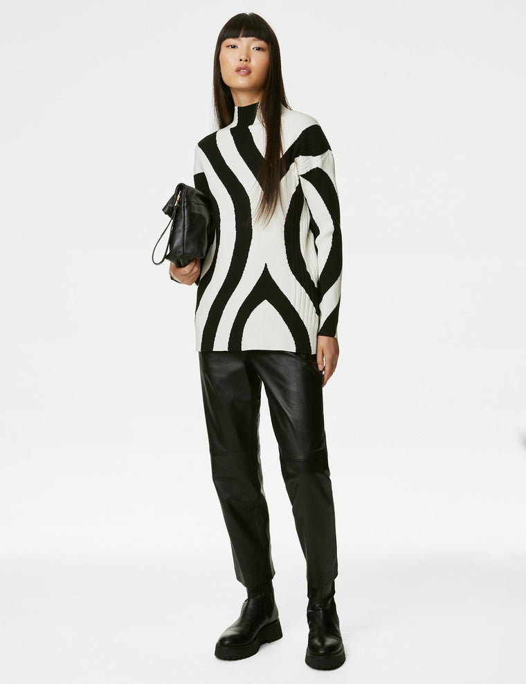 Elevate your cold-weather ensembles with this cosy jumper from our Autograph collection. This ribbed piece is made to a flattering longline fit with side splits, and features a funnel neck for a clean, contemporary look. A striking all-over design makes this a standout winter essential. Autograph: premium investment pieces featuring contemporary cuts and refined finishing touches.