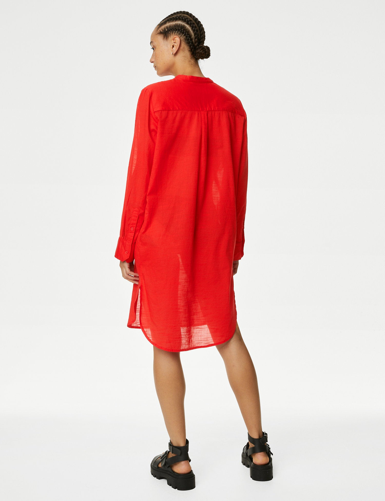 Crafted from pure cotton, this breezy beach cover-up shirt brings effortless elegance to your holiday wardrobe. Cut in a regular fit, the stylish collarless design features a round neck and a button-through front. Side splits in the longline hem allow easy movement, while the chest pocket adds a neat finish. M&S Collection: easy-to-wear wardrobe staples that combine classic and contemporary styles.