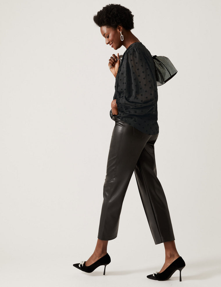 Our vintage-inspired sheer blouse features a pretty star print in a textured flock effect. It's cut to a comfortable regular fit, with long sleeves that finish in elasticated cuffs for a voluminous look. A plain cami attached underneath gives extra coverage, while a neat tie at the neckline adds the finishing touch. M&S Collection: easy-to-wear wardrobe staples that combine classic and contemporary styles.
